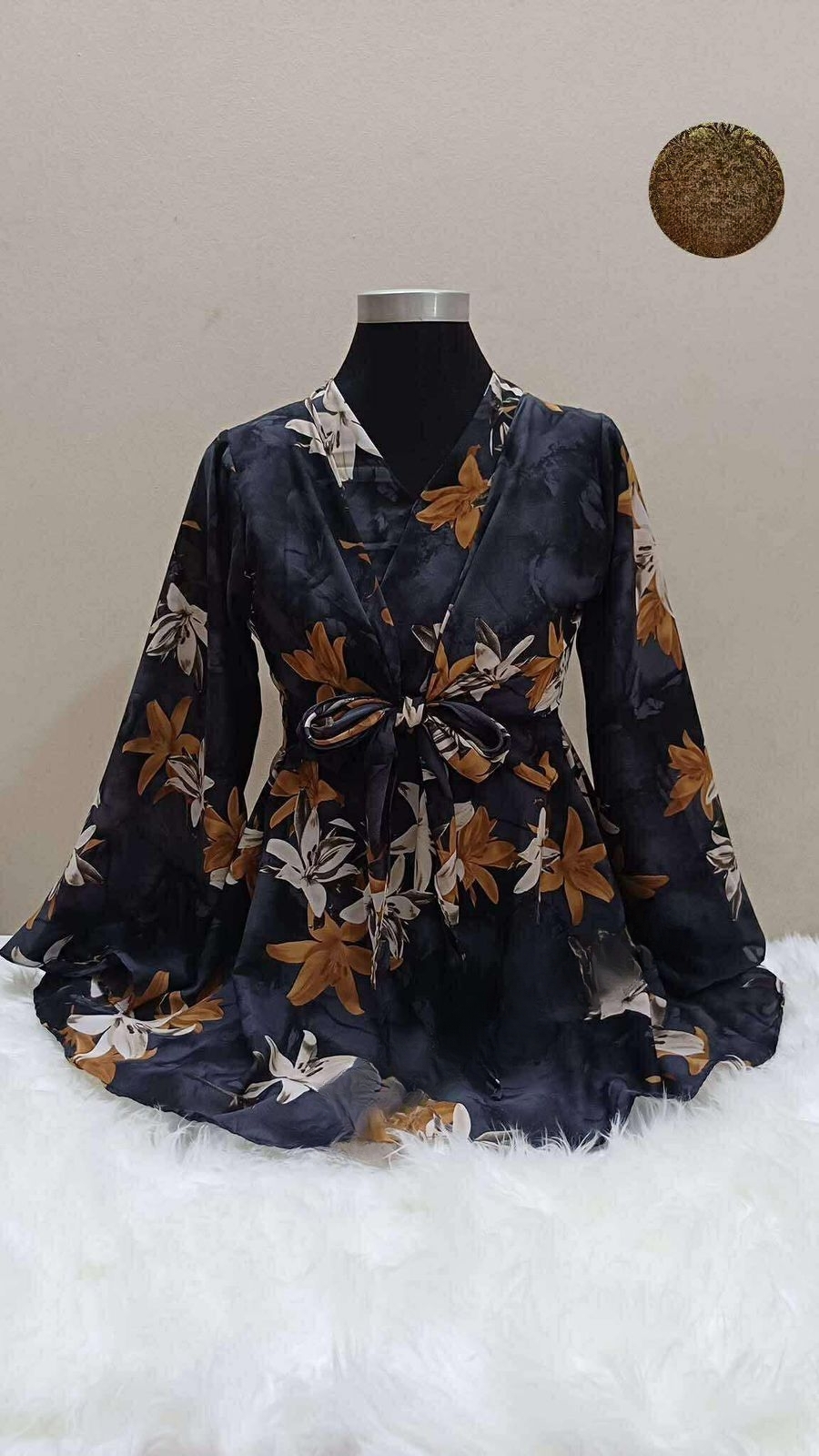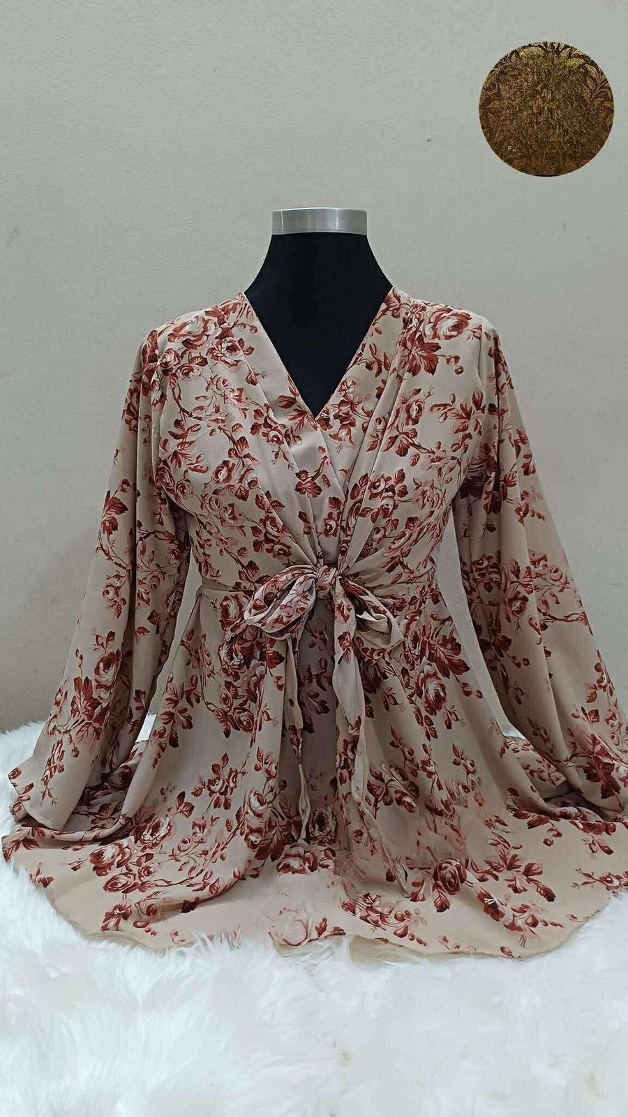 This premium Alex Georgette short top features delicate floral prints, button details, and a stylish silhouette. With a body size range of 34–46, a length of 31", sleeve length of 22", and a 65" flare, it combines comfort with contemporary style. Perfect for casual, festive, or semi-formal wear.